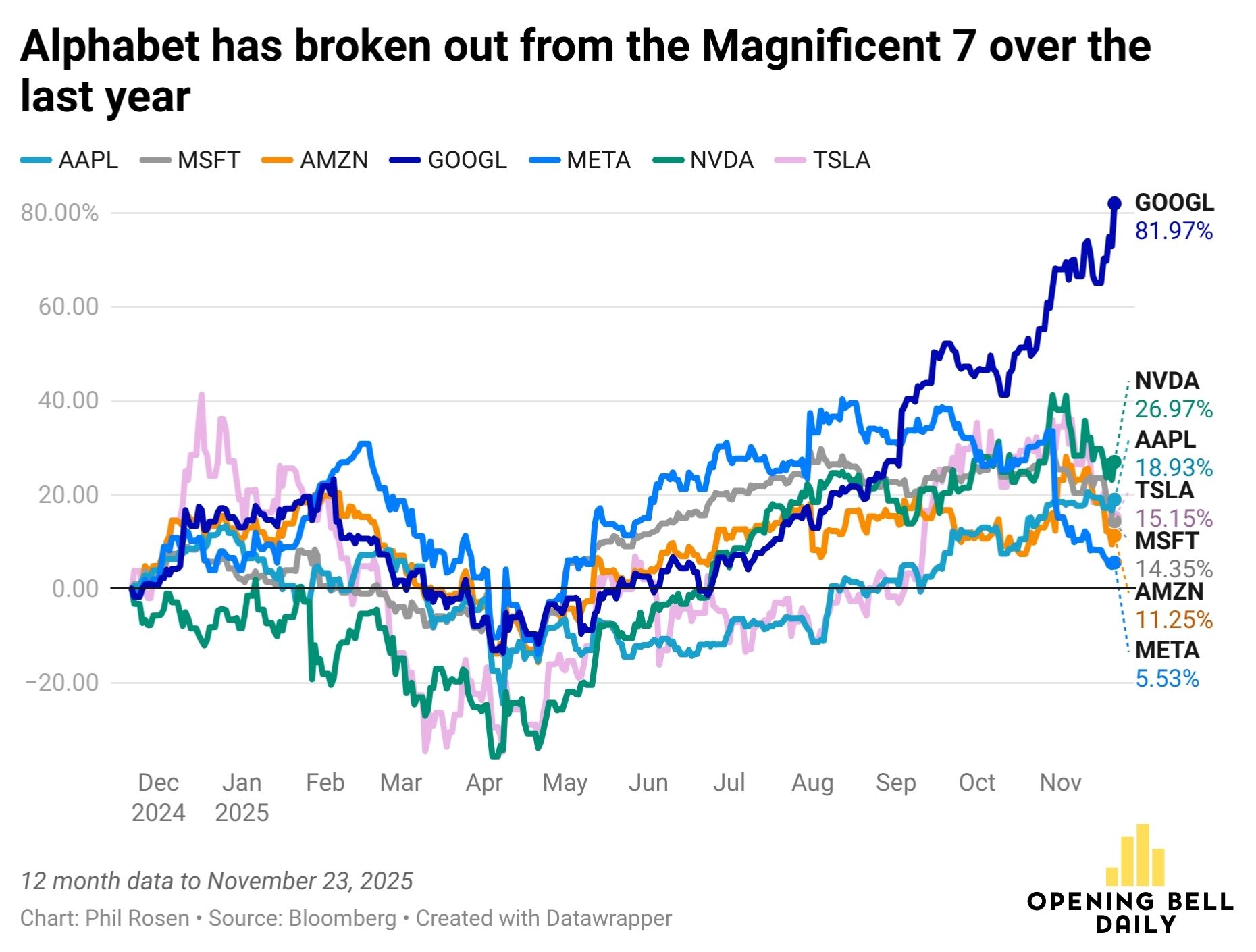 Novelty aside, Wall Street seems to believe that Alphabet has seized the momentum against its Magnificent 7 peers and other AI names.