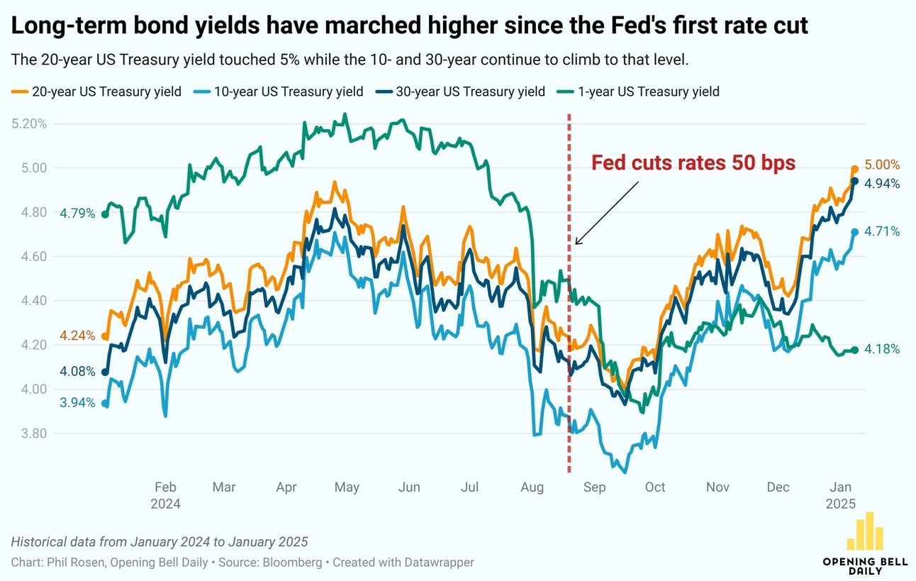 This morning we’re unpacking red flags in the Treasury market, spiking bond yields, and more. Forwarded this newsletter? Join 190,000 self-directed investors gaining an edge every morning — sign up here.
