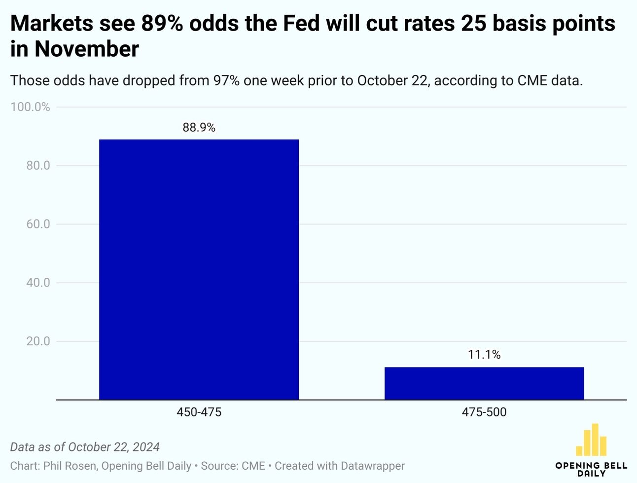 For the November 7 Fed meeting, markets see a quarter-point cut as a shoe-in.