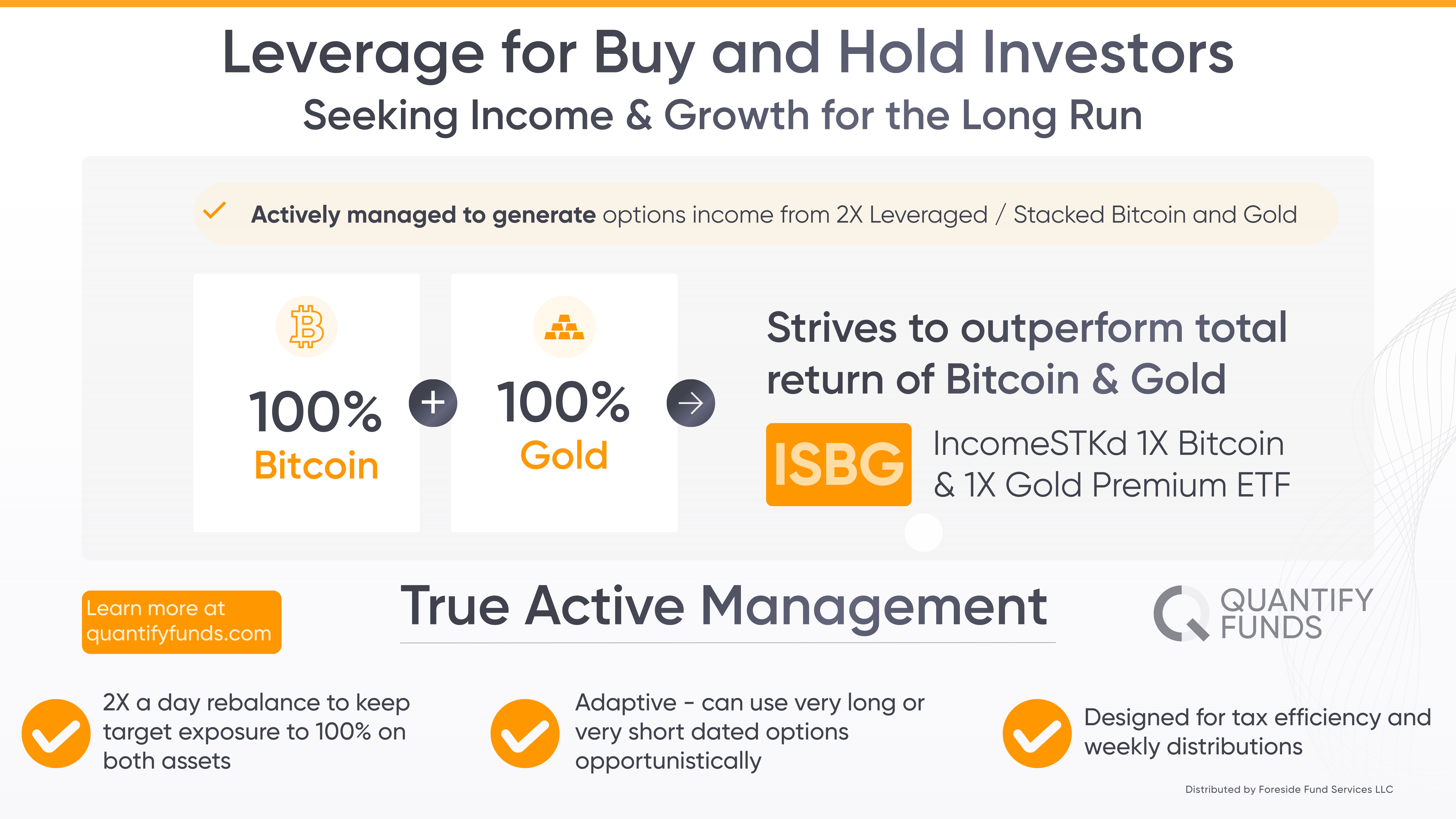ISBG uses Bitcoin, Gold, and Stock options and do not invest directly in bitcoin, gold, or stocks. The use of derivative instruments involves risks different from, or possibly greater than, the risks associated with investing directly in securities and other traditional investments. These risks include (i) the risk that the counterparty to a derivative transaction may not fulfill its contractual obligations; (ii) risk of mispricing or improper valuation; and (iii) the risk that changes in the value of the derivative may not correlate perfectly with the underlying asset, rate or index. Derivative prices are highly volatile and may fluctuate substantially during a short period of time. The use of leverage by the Fund, such as borrowing money to purchase securities or the use of options, will cause the Fund to incur additional expenses and magnify the Fund’s gains or losses.