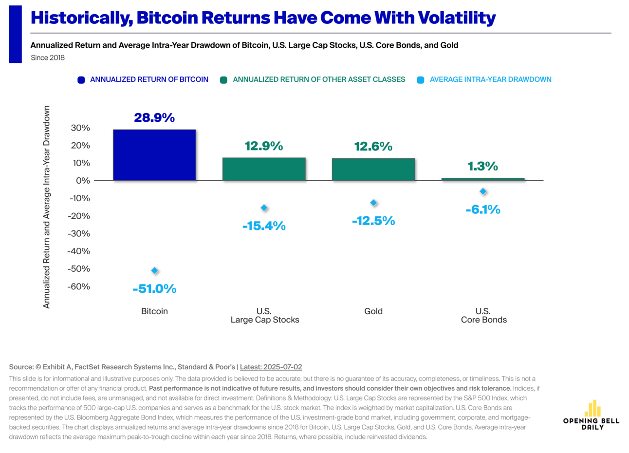 Bitcoin has outpaced major asset classes since 2018 though it has the most volatility (Chart courtesy of Exhibit A)