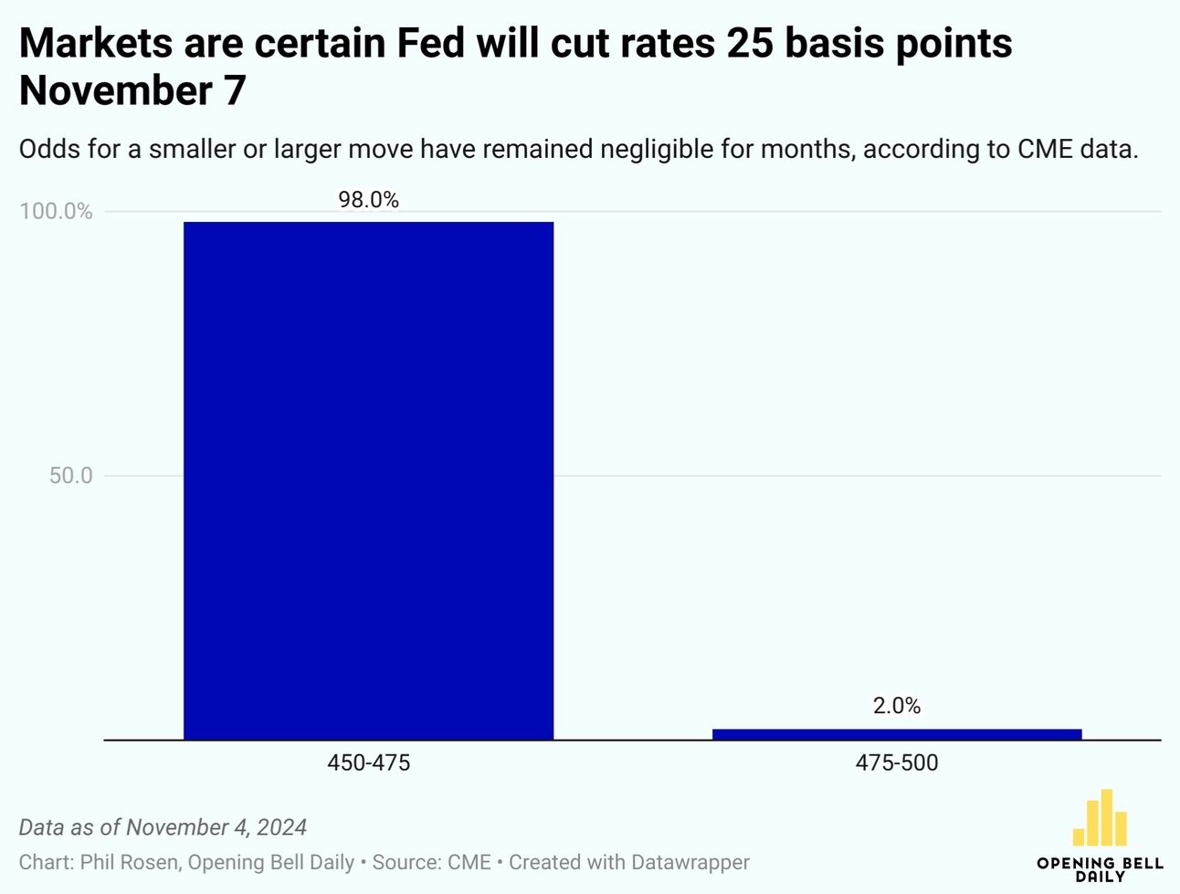 And while November 5 has been the biggest circle on the calendar for months, the Federal Reserve is making what’s widely expected to be a 25-basis-point interest rate cut on November 7.
