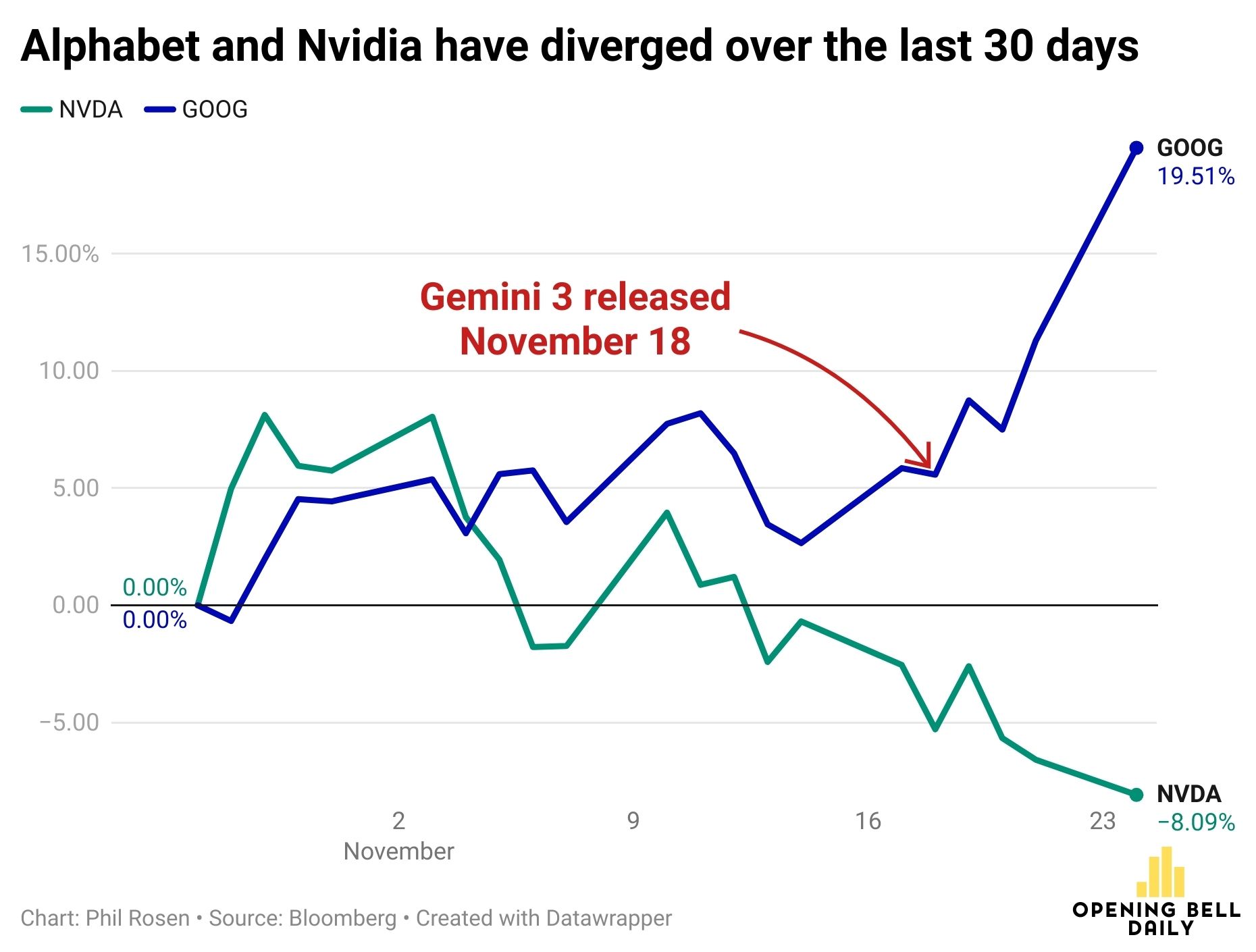 Good morning, investors. It’s not every day you see two of the biggest stocks in the world diverging like Alphabet and Nvidia did on Tuesday.