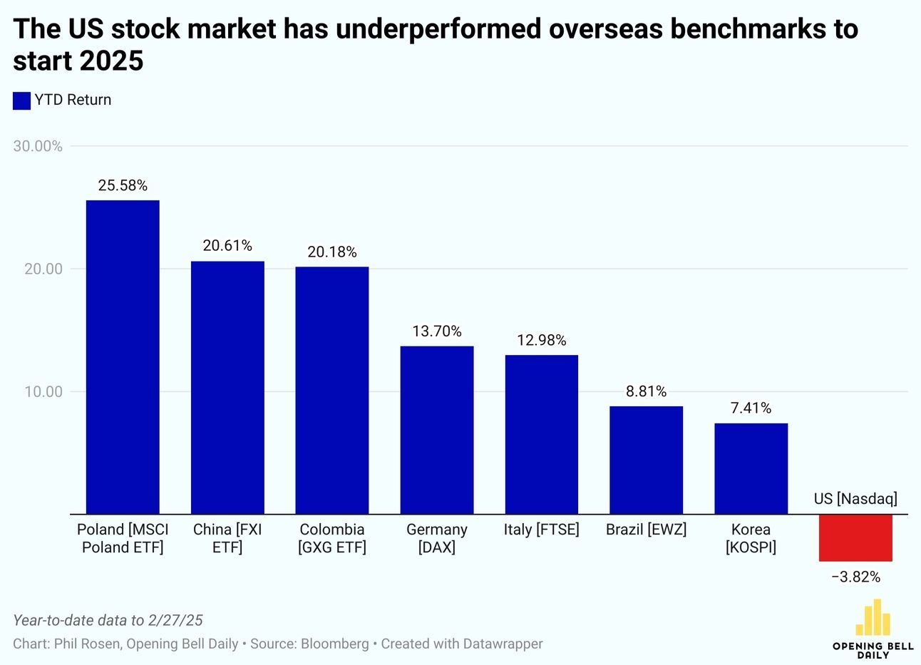“Reasons for overseas markets’ strong recent showing include relatively attractive valuations, the emergence of competitive Chinese AI technology, and progress toward ending the Russia-Ukraine war,” said Mike Dickson, head of research at Horizon Investments.