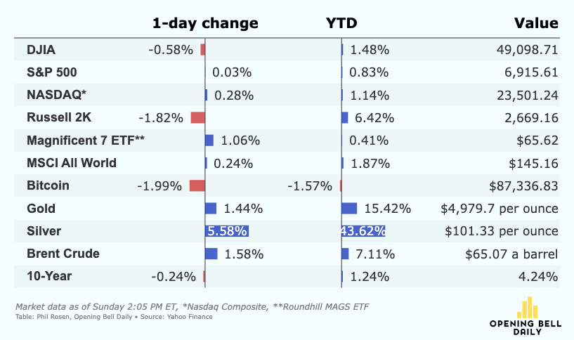 📈 Earnings are propping up the market. Despite drama in Greenland and controversy out of Davos, investors remain confident in the market on account of the strength of fundamentals. The S&P 500 is seen posting year-over-year profit growth of 8.3% for the fourth quarter. (Yahoo Finance)