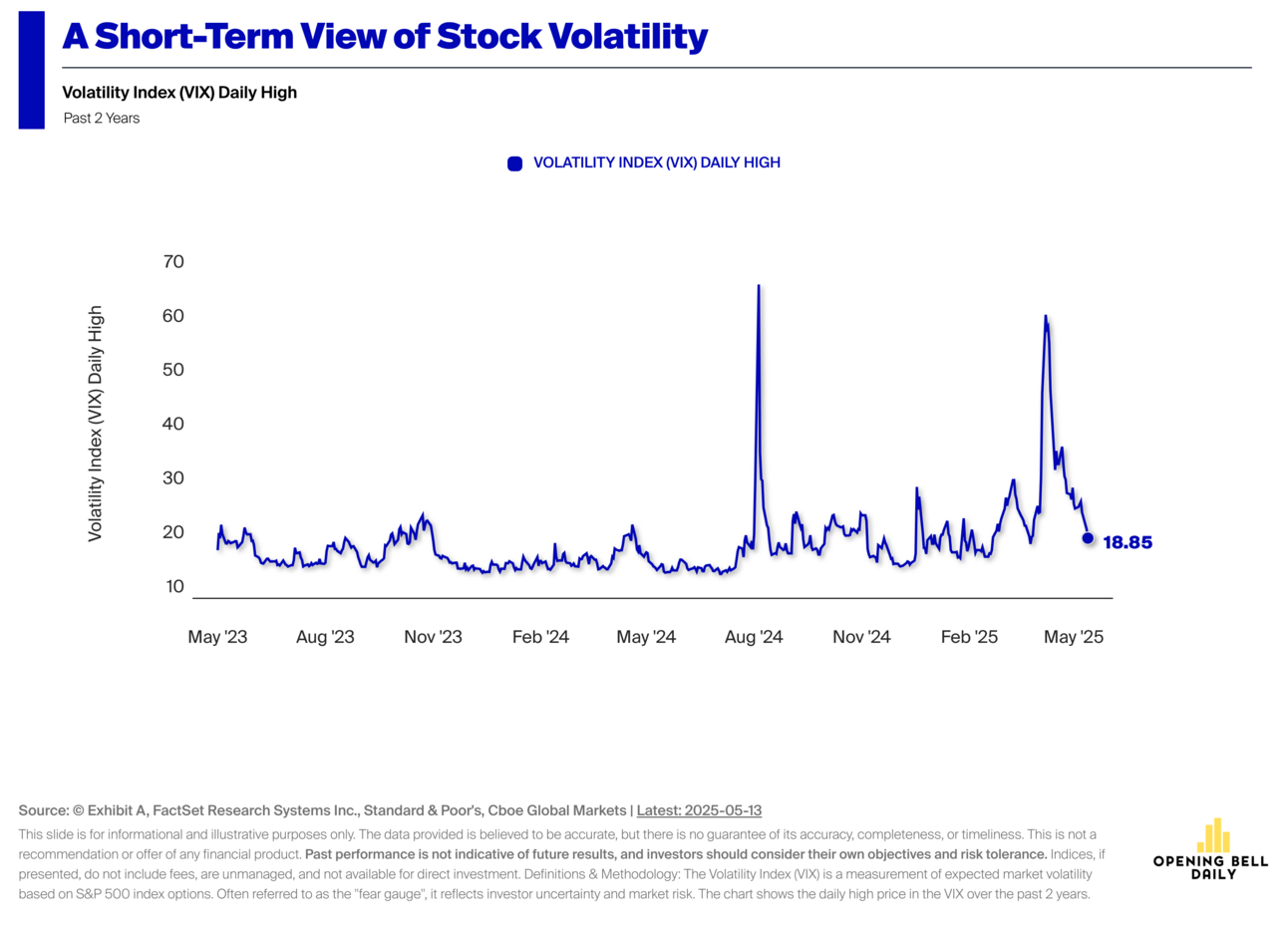 The collapse has been dramatic. From April 10 to May 12, the VIX posted its sharpest decline on record, according to Bespoke Investment Group.