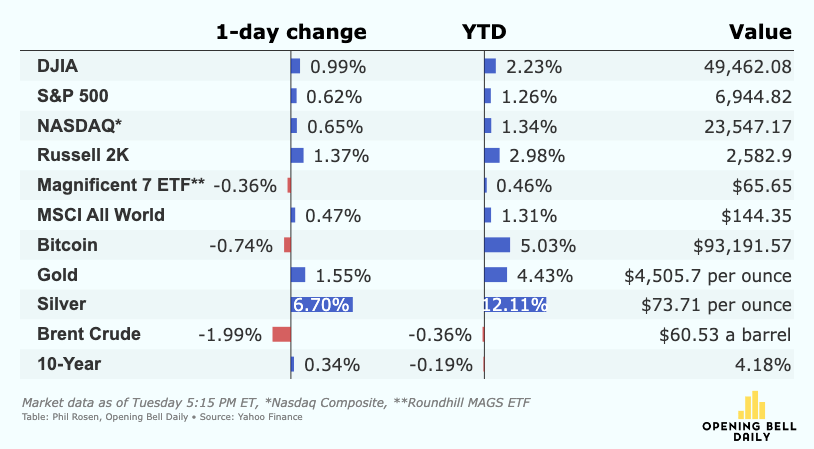 📈 Stocks hit new records on Tuesday. The S&P 500 reached an all-time high while the Dow closed above 49,000 for the first time ever. Geopolitics, it seems, are not the risk-off event they once were. (CNBC)