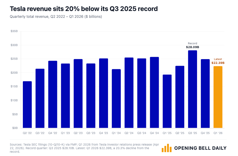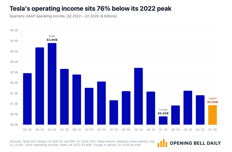 Automotive gross margin excluding credits climbed to 19.2% for its strongest print in over a year, though still short of the 26.5% peak Tesla hit in 2021.