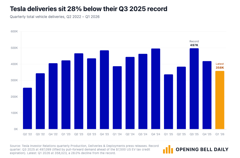 Meanwhile, car deliveries came in at 358,023, below estimates for 365,645.